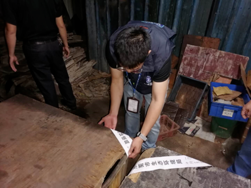 ▲执法人员对生产设备进行查封