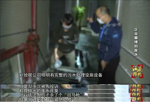 据现场执法人员介绍,补给舰公司明明有完整的污水处理设施设备,但是却多次被人投诉,称其排出的废水很臭,所以执法人员才杀了个“回马枪”,结果就遇到对方“紧急抢修”。