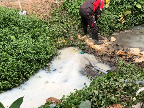 3月10日上午,横沥生态环境分局执法人员在巡查中发现,位于新城排渠上游小河涌存在白色废水,部分河段出现“牛奶河”现象!分局领导高度重视,马上调集执法骨干迅速到现场排查处置。执法人员根据白色河水存在位置对相关区域和管网进行排查,最终查明,污染源来自某五金制品厂。该工厂在搬运机器过程中,将机器中存放的切削液洒漏到车间地面,工人随后对地面进行清洗,致使将含有切削液的白色废水经雨水管网排入附近的小河涌,执法人员对该企业的违法行为进行了立案查处。